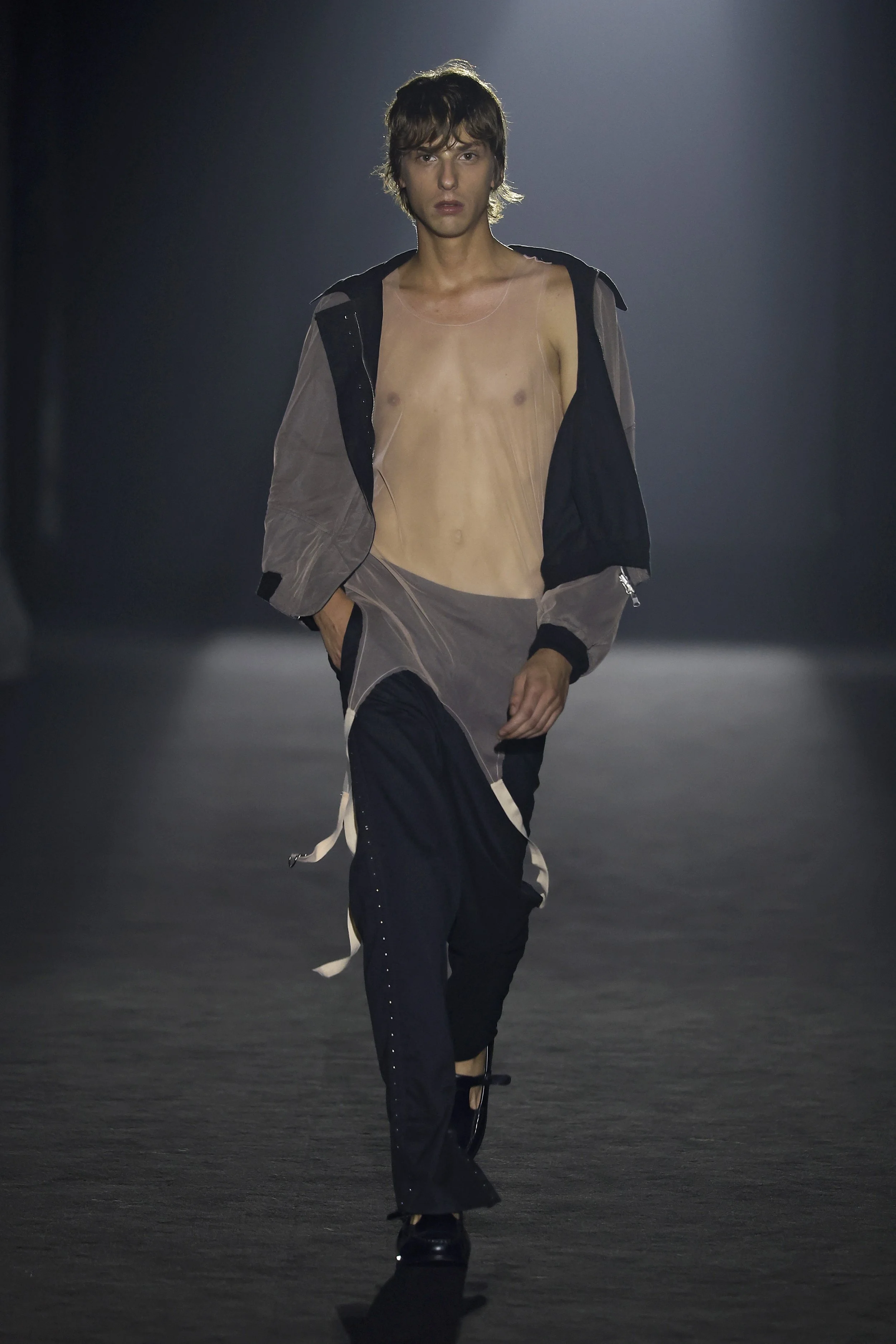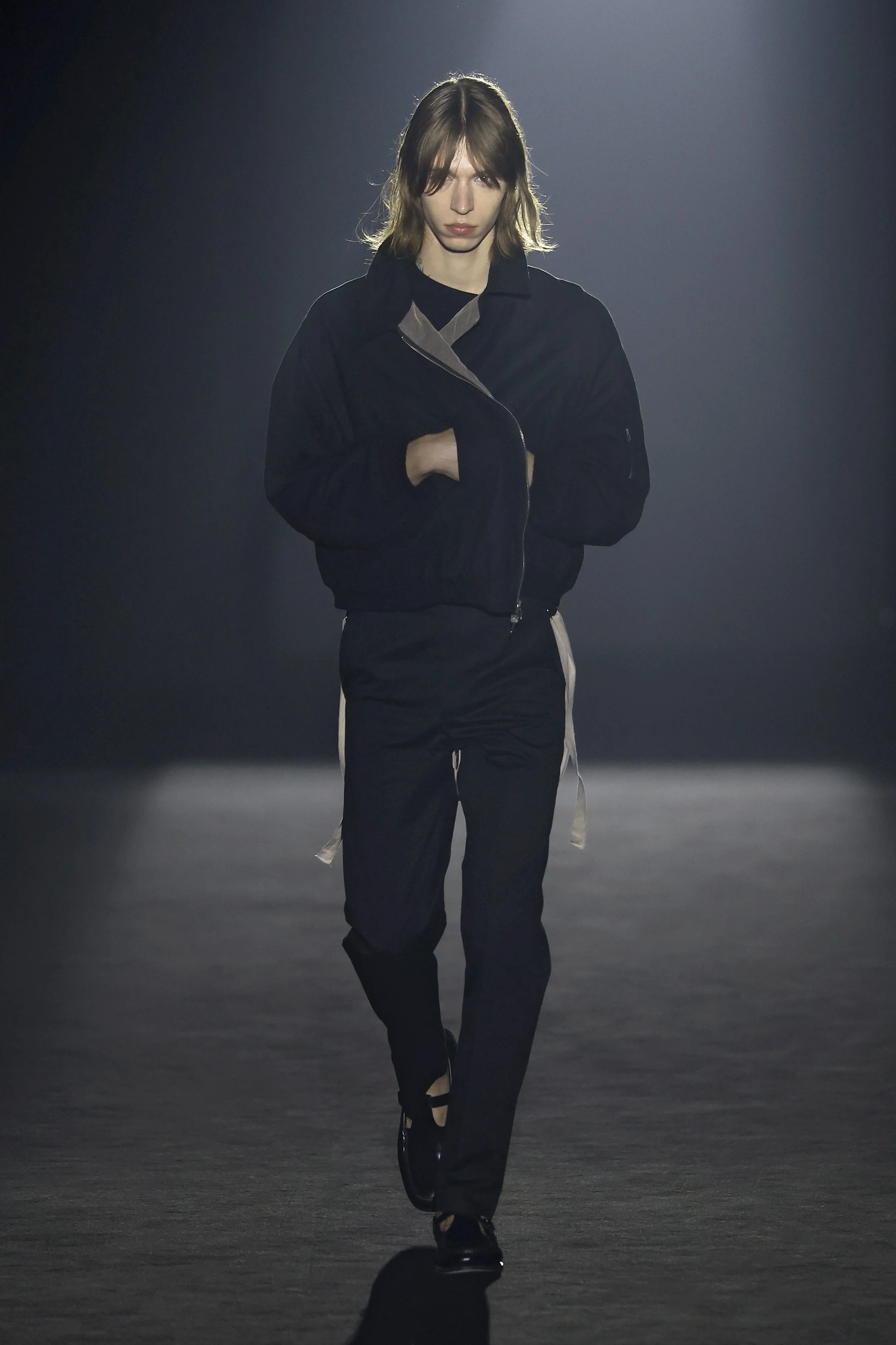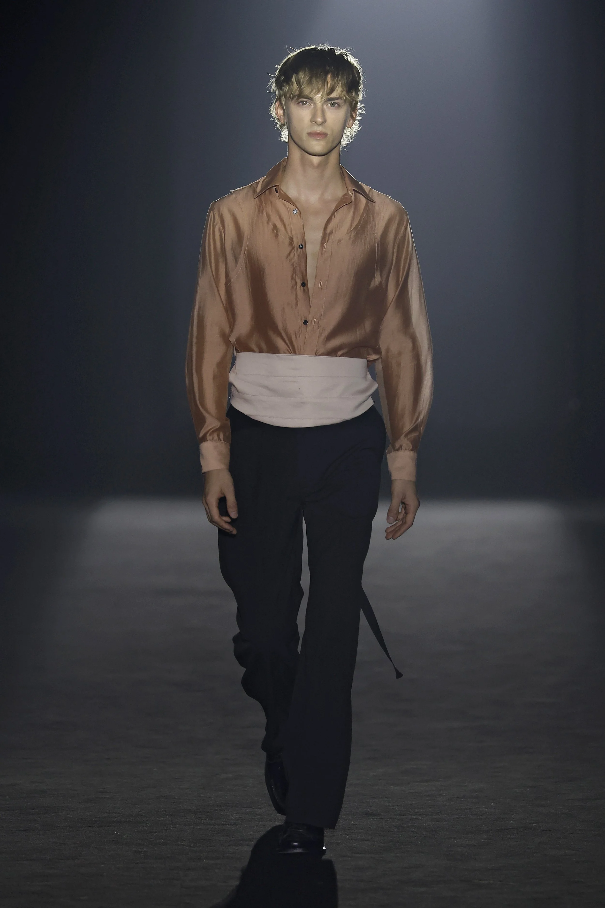 Masculine and feminine drift toward one another, no longer opposites but reflections. In this space of tension, the questioning of menswear continues — not by rejecting its language, but by rearanging its codes to speak in new forms.