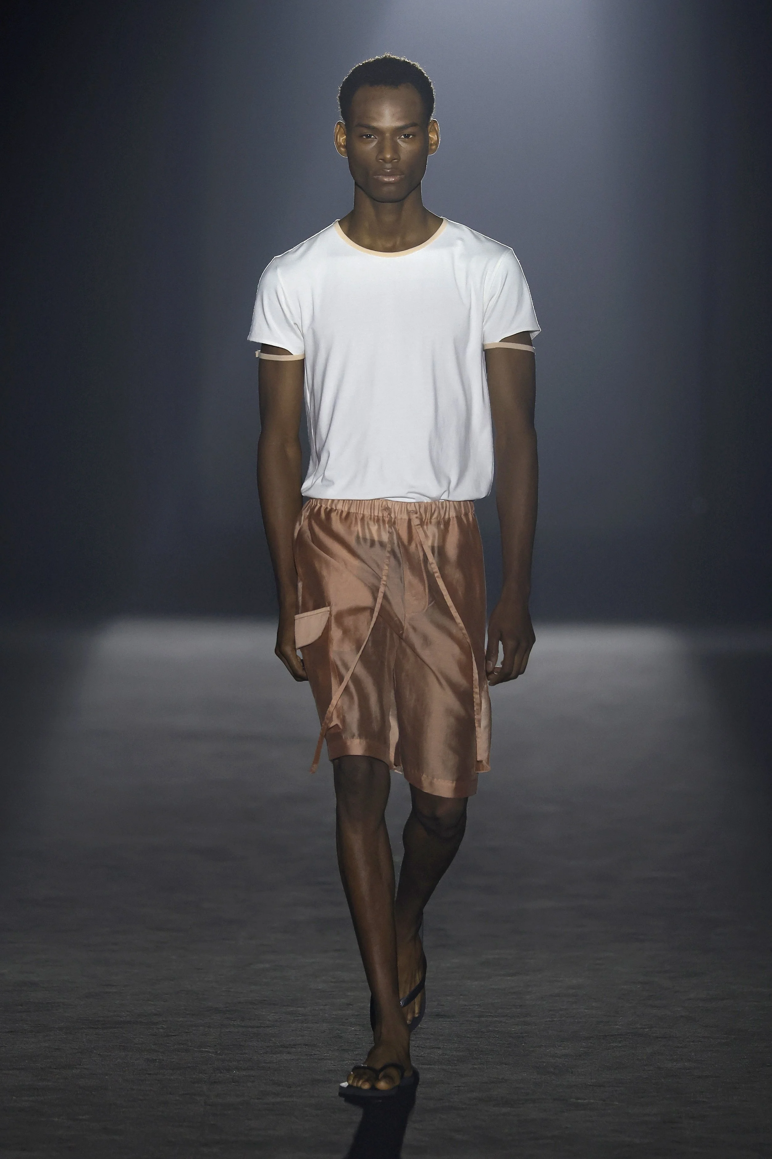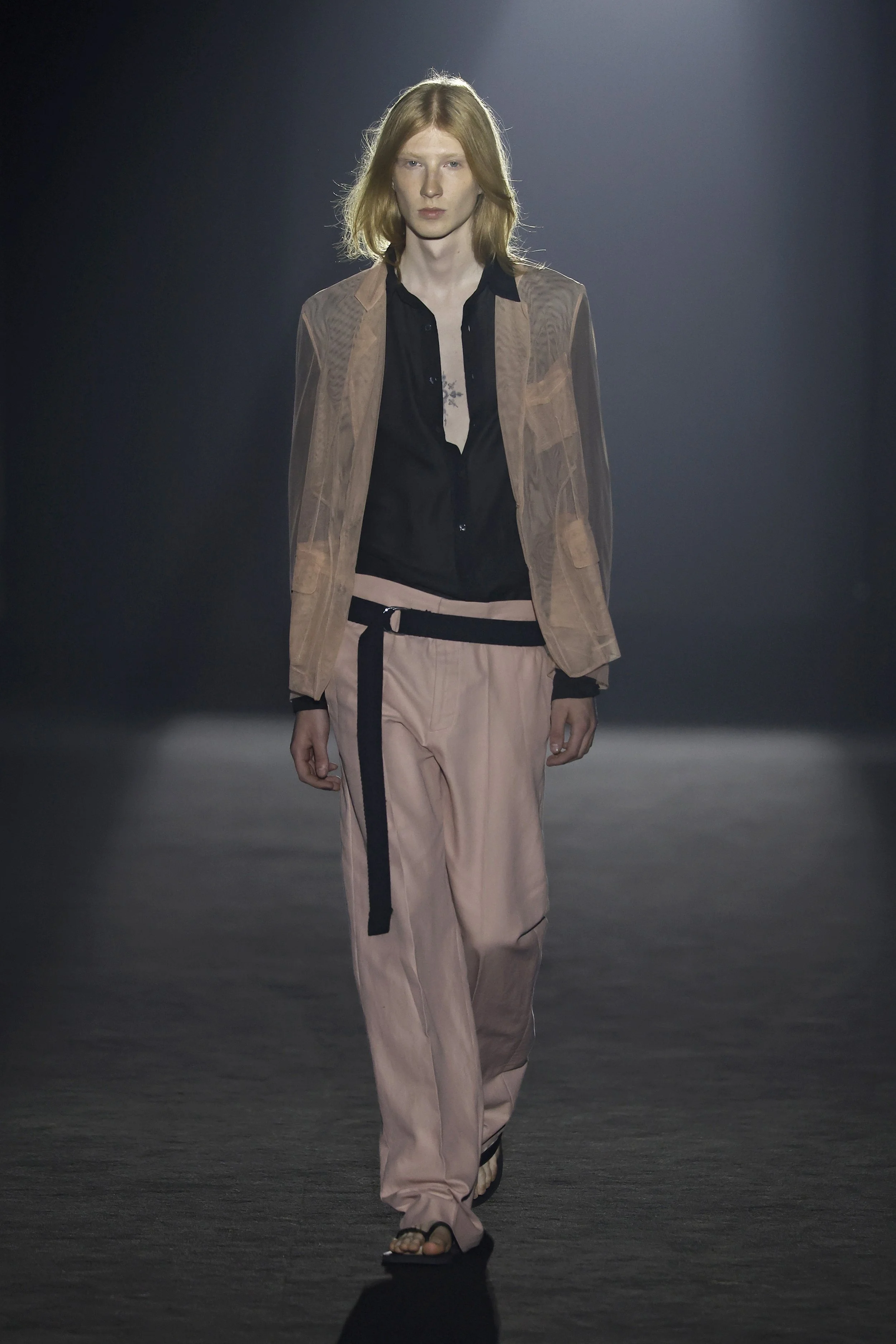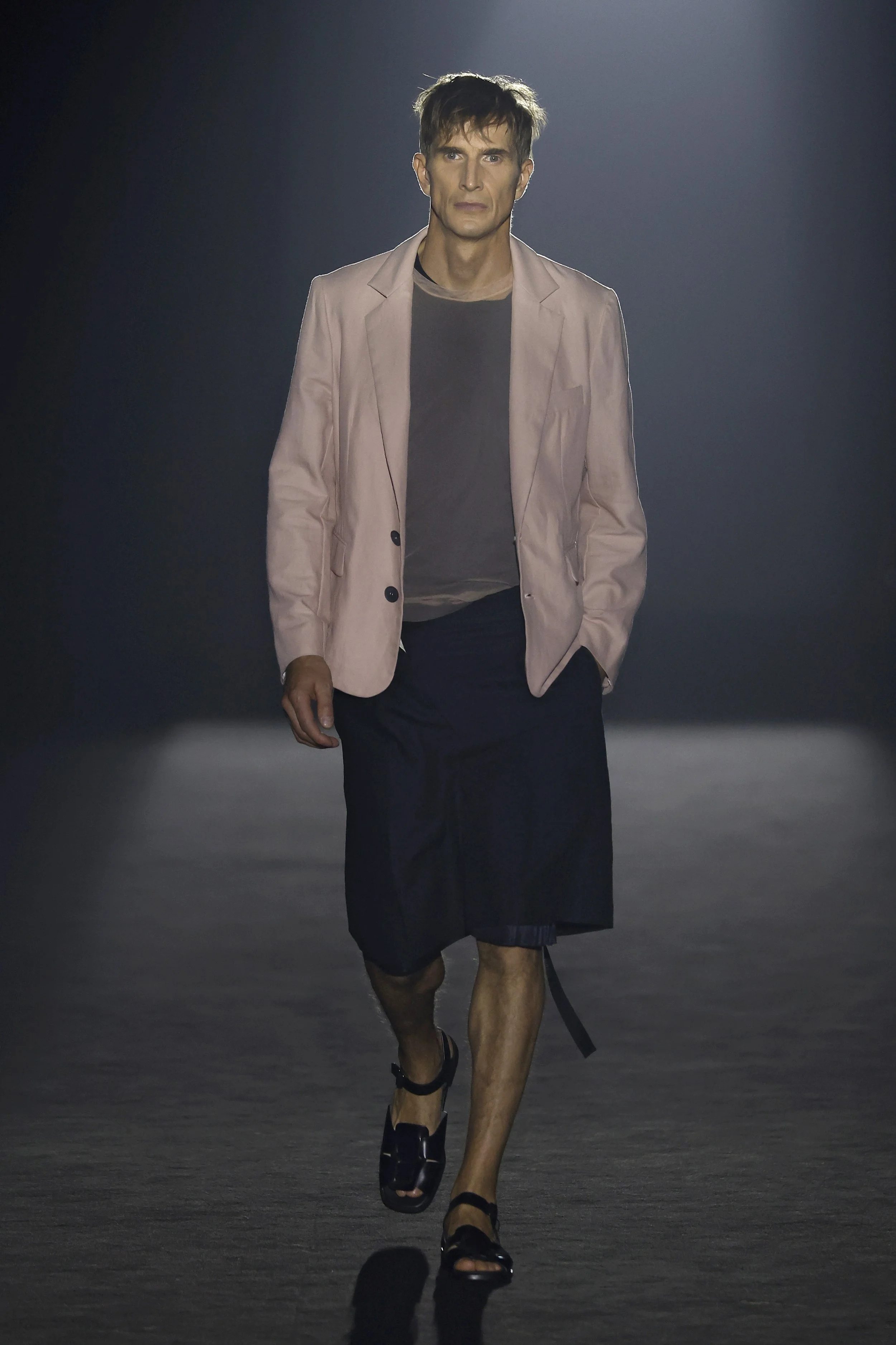 Masculine and feminine drift toward one another, no longer opposites but reflections. In this space of tension, the questioning of menswear continues — not by rejecting its language, but by rearanging its codes to speak in new forms.